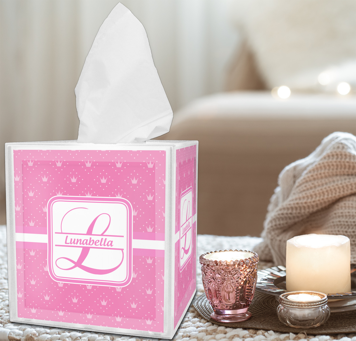 Looking to pair your brand new tissue box cover with additional accessories? We invite you to shop by room by choosing from our Bathroom, Bedroom, Home Decor categories, and more! If this tissue box is for a bathroom, consider pairing it with toothbrush holders or wastebaskets! If this is for a bedroom, try customizing a matching lampshade for it! The options for personalization are limitless.