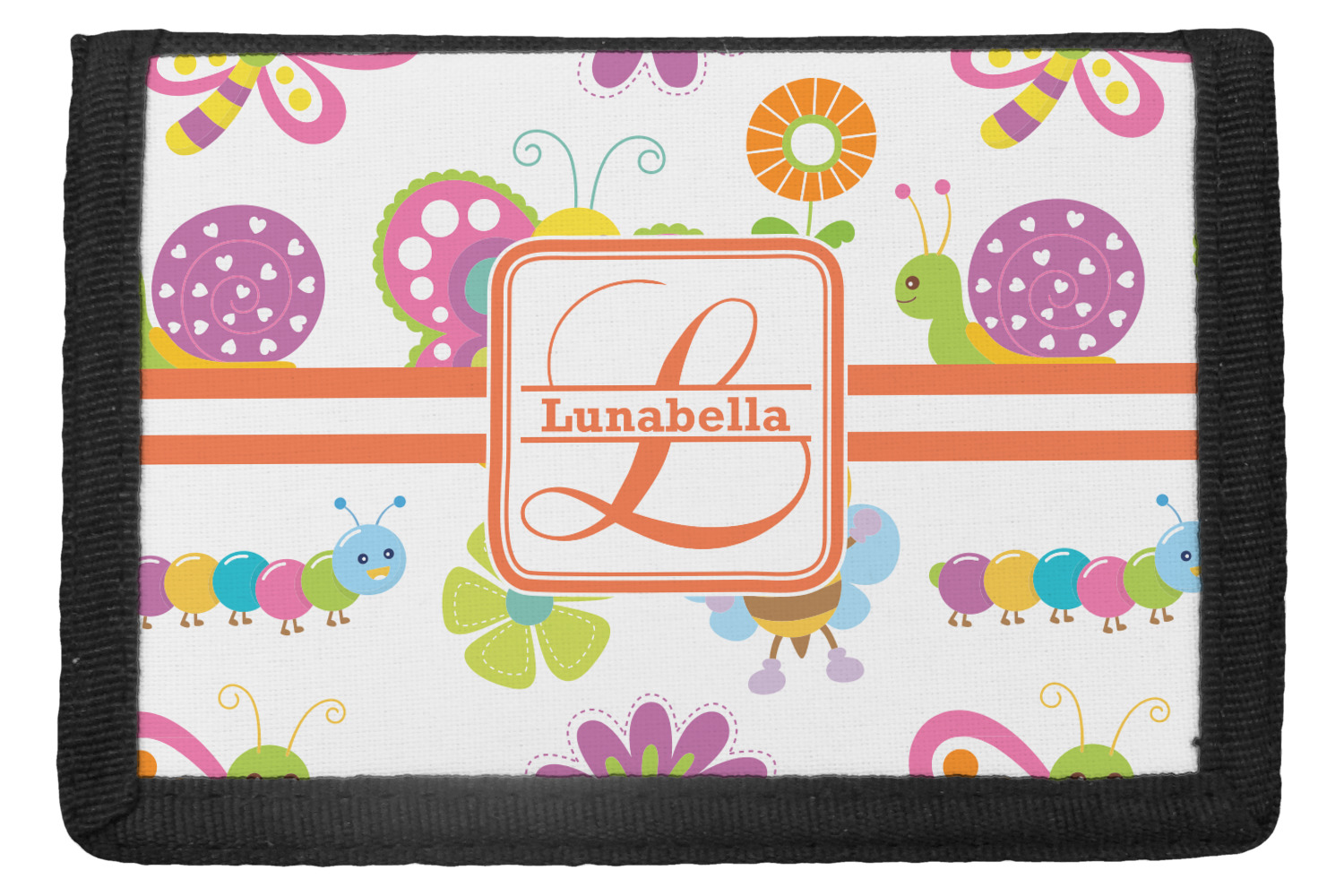 The wallets are black with the design printed on the front flap. You are able to create your design either horizontally OR vertically. They have 4 slots for IDs or credit cards and 1 large slot for cash. The wallet folds in thirds and is tightly secured by velcro. They are great starter wallets for kids or just as a good durable wallet for an adult.