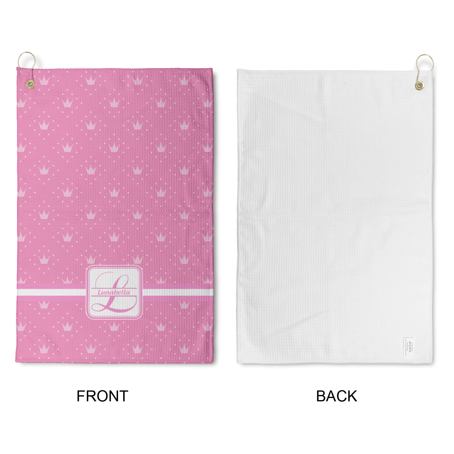 Personalize your design for your towel in our design studio then we will custom print and make it for you. The heavy duty brass grommet and hook are perfect for hanging anywhere you need it to. The waffle weave material is a durable microfiber material that will absorb up to 7 times its weight.