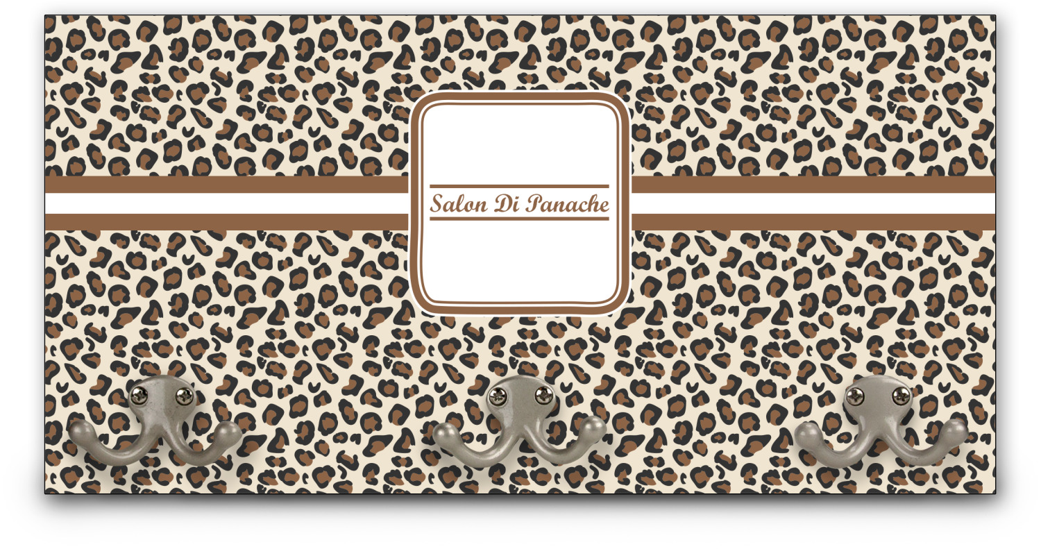 This coat rack is the perfect way to add some personality to your wall or entryway. The board is made of a strong maple that is approximately 16" x 8". The three 2-prong hooks are a sturdy metal that have two screws attaching them to the board. Your design is printed right onto the front of the board while the back and sides are a simple black.