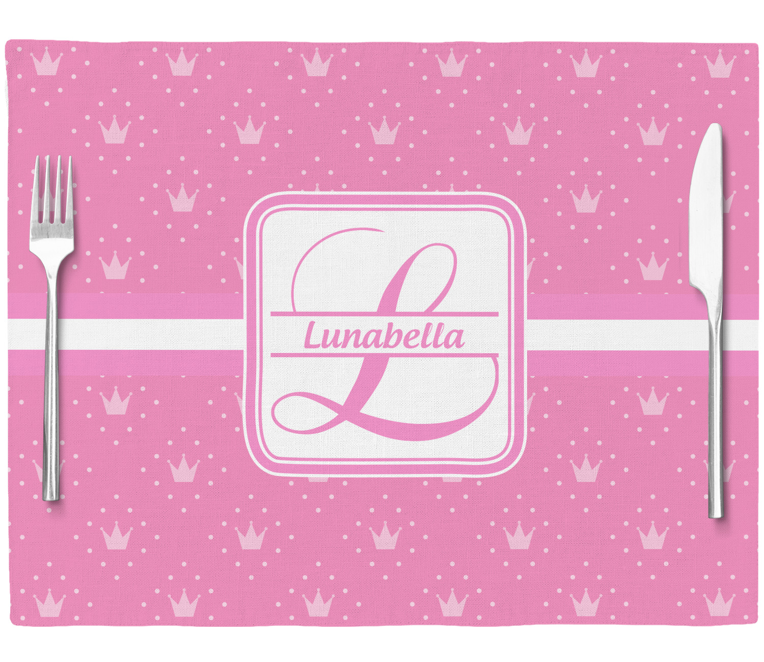 Each of our table mats are a poly twill material with woven burlap detailing. This creates a soft, quality placemat for us to fully print your personalized design across. The woven twill also adds a wrinkle-free surface to set your table! Each customizable placemat is a rectangle shape measuring at approximately 13 x 18 and printed here in the USA.
