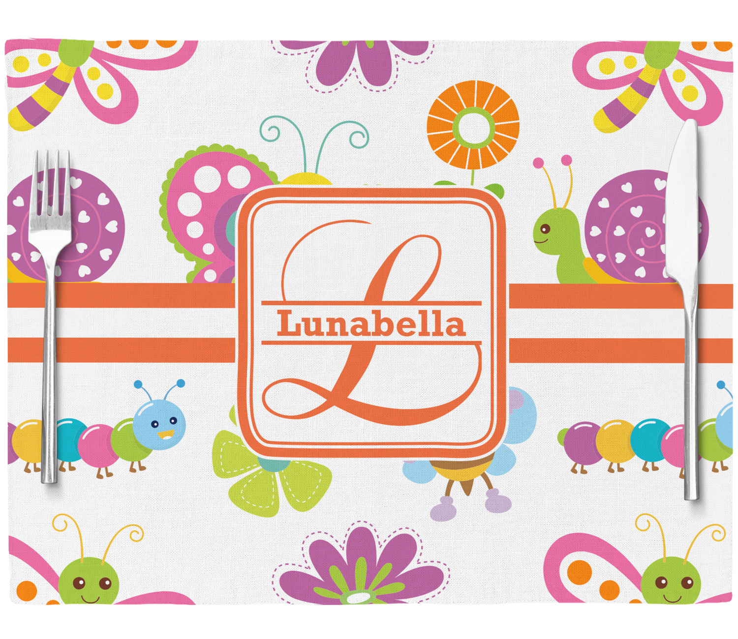 Each of our table mats are a poly twill material with woven burlap detailing. This creates a soft, quality placemat for us to fully print your personalized design across. The woven twill also adds a wrinkle-free surface to set your table! Each customizable placemat is a rectangle shape measuring at approximately 13 x 18 and printed here in the USA.