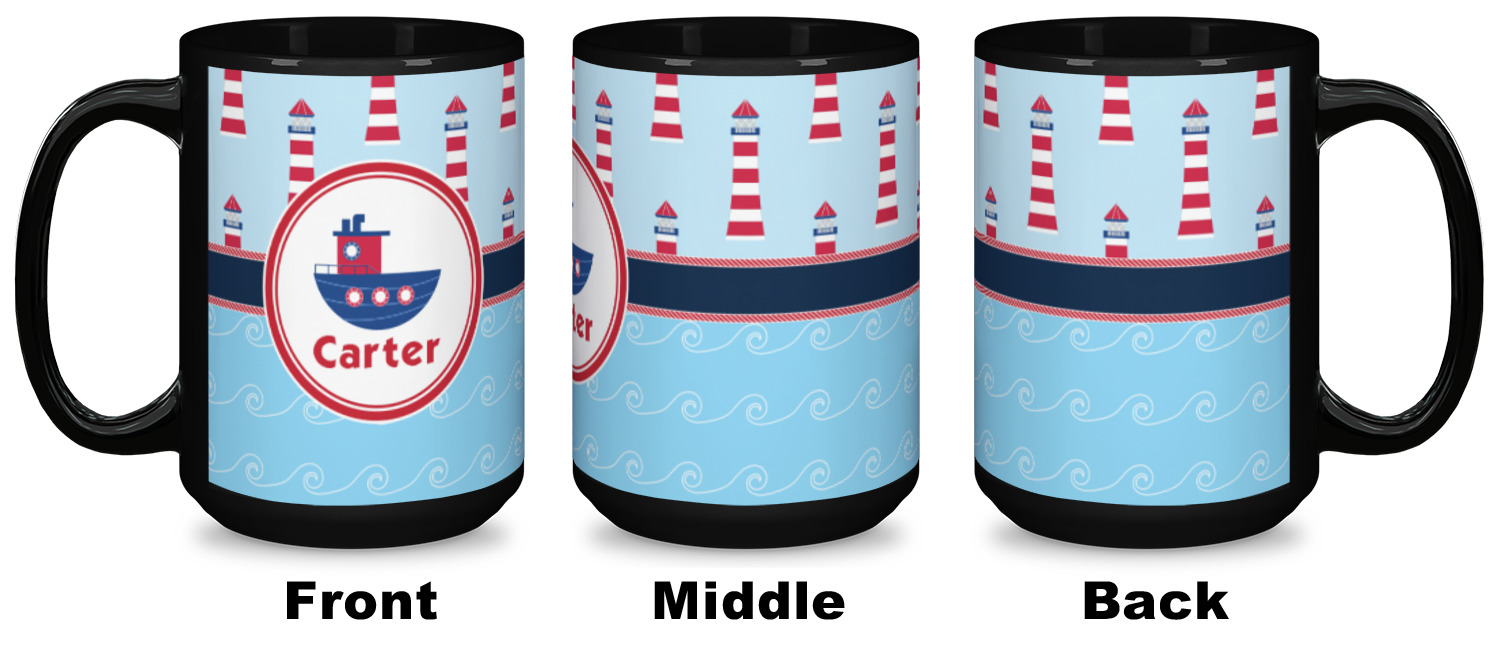 Our ceramic mugs have your design or photo printed along the surface with a gloss finish. The ceramic material of our mugs is dishwasher and microwave safe so you can reheat your tea or coffee if needed! We offer two different base colors with multiple mug sizes. The white ceramic mugs come in three size options - 11 oz., 15 oz., and 20 oz. Our black ceramic mugs are sold in either 11 oz. or 15 oz. sizes.