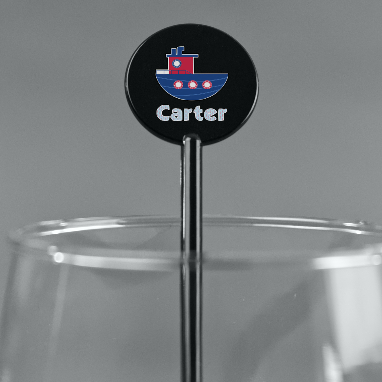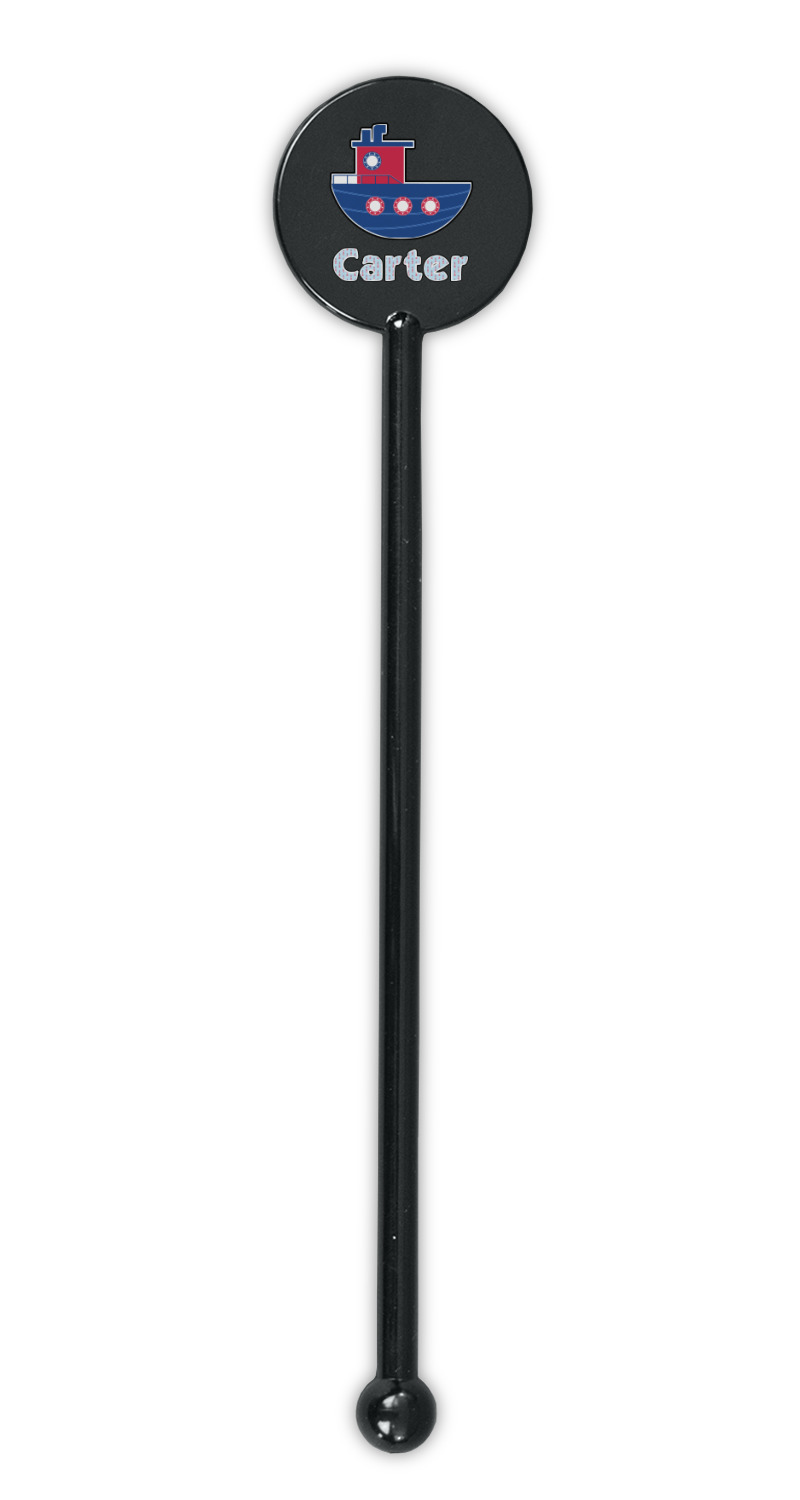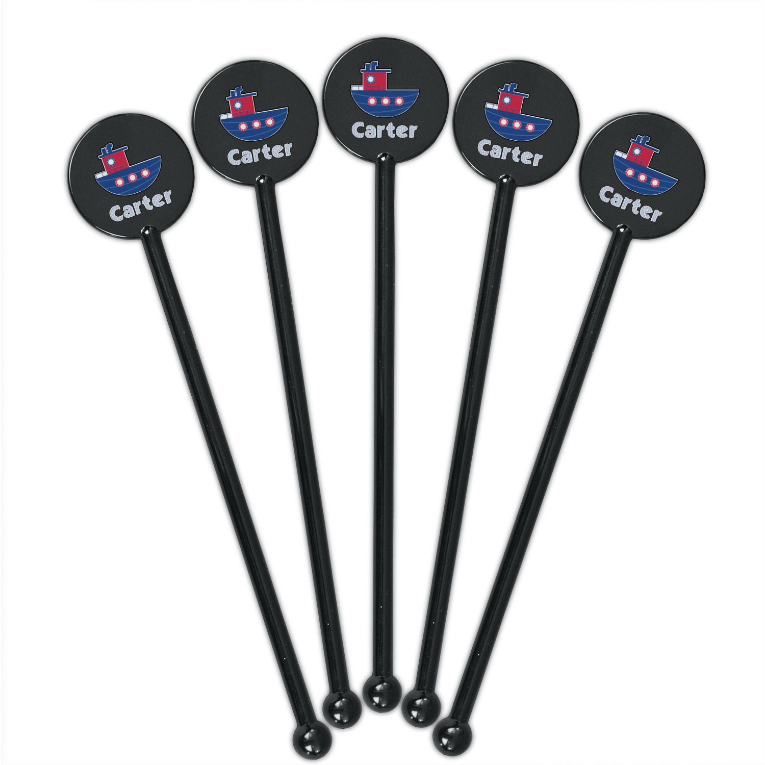 Tug Boat Designs for 5.5" Round Plastic Stir Sticks - Black - Double-Sided