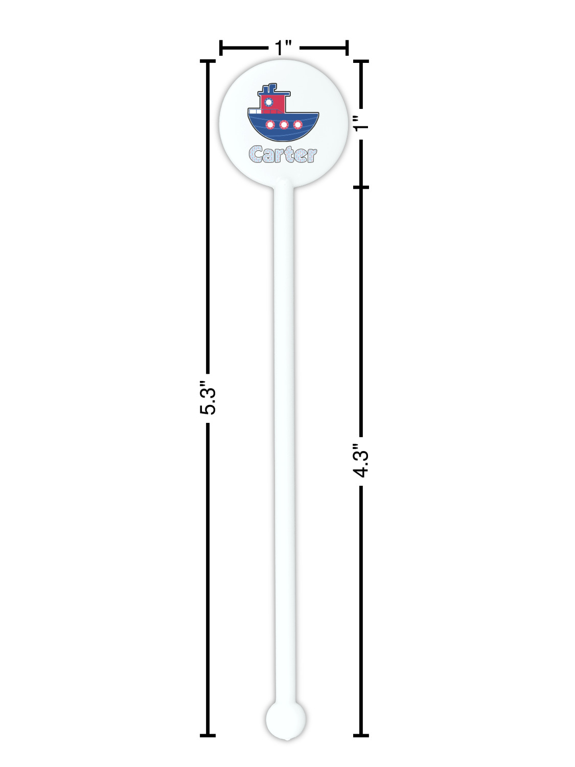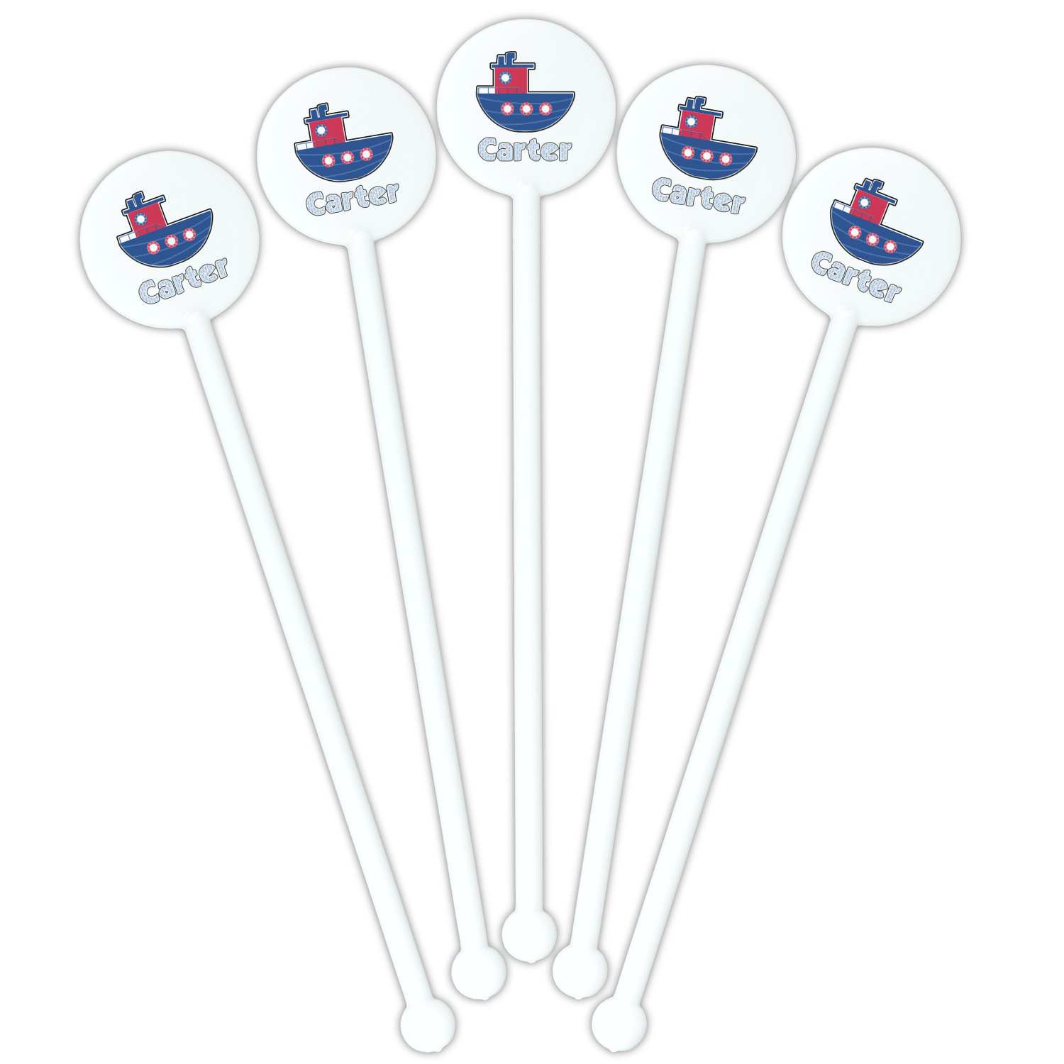 Tug Boat Designs for 5.5" Round Plastic Stir Sticks - White - Single-Sided