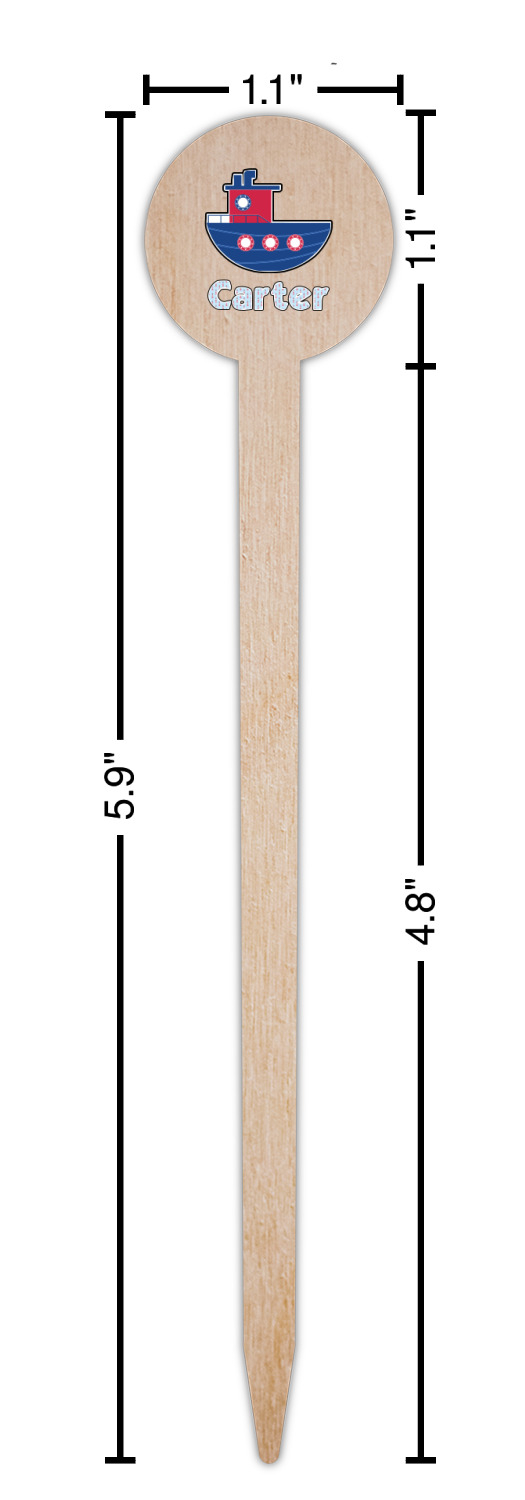 Tug Boat Designs for 6" Round Wooden Food Picks - Single-Sided