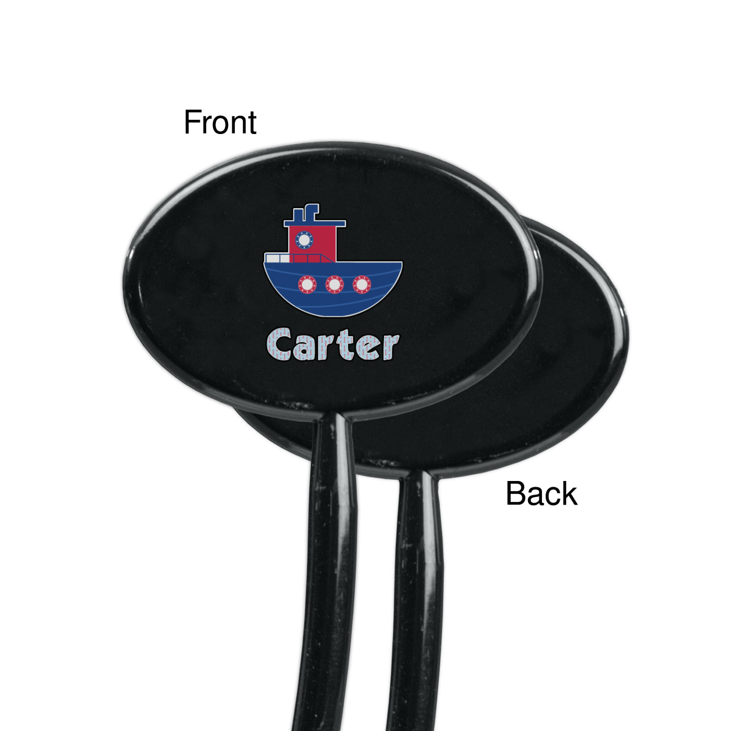 Tug Boat Designs for 7" Oval Plastic Stir Sticks - Black - Single-Sided