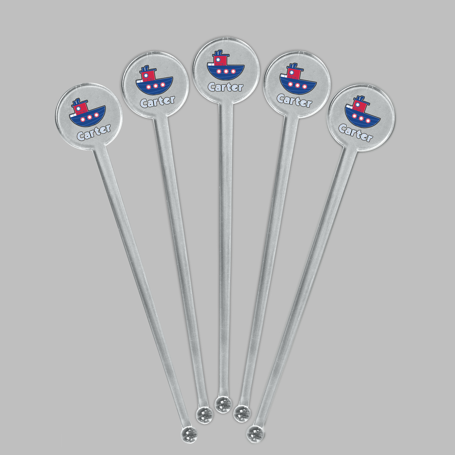 Tug Boat Designs for 7" Round Plastic Stir Sticks - Clear
