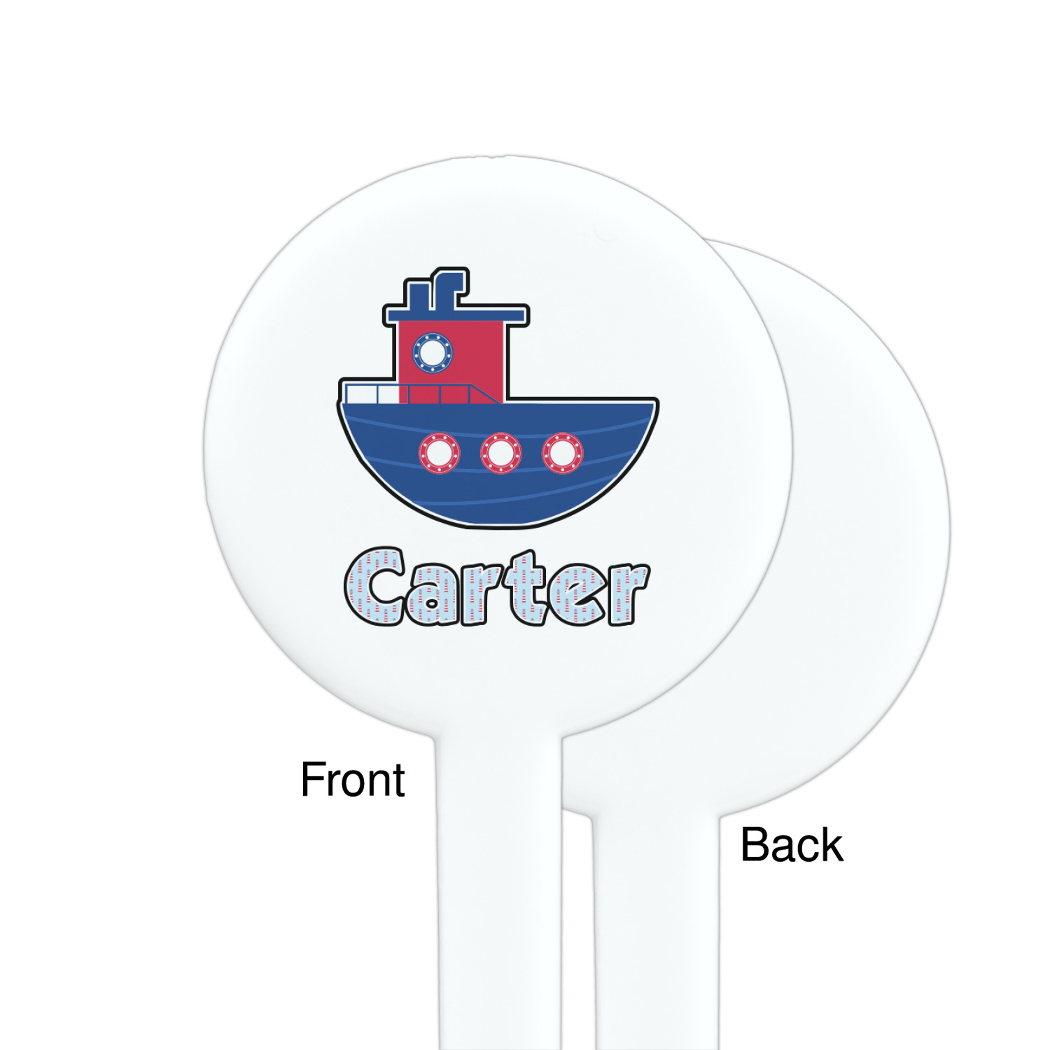 Tug Boat Designs for 7" Round Plastic Stir Sticks - White - Single-Sided