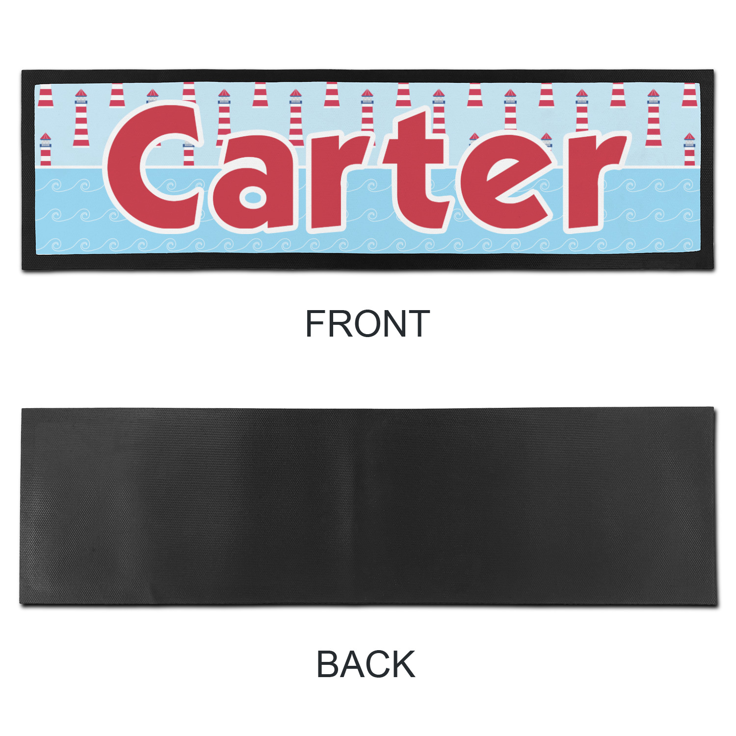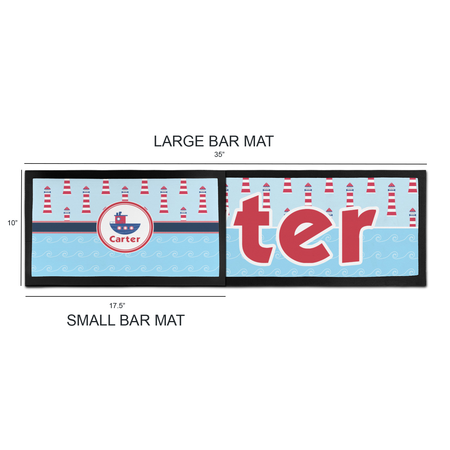 The center focal point of the design is a whimsical coordinating colored tugboat showcased in what looks like a ship's porthole with your personalized name under the tugboat.