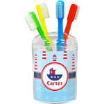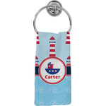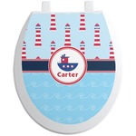 The center focal point of the design is a whimsical coordinating colored tugboat showcased in what looks like a ship's porthole with your personalized name under the tugboat.