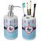 This two piece, ceramic bathroom set will add the perfect splash of color to any bathroom. This set includes one pump dispenser, ideal for soap or lotion, and one toothbrush holder with four holes. Although originally designed for toothbrushes, the holder will also hold make-up brushes, nail files, and other bathroom tools.