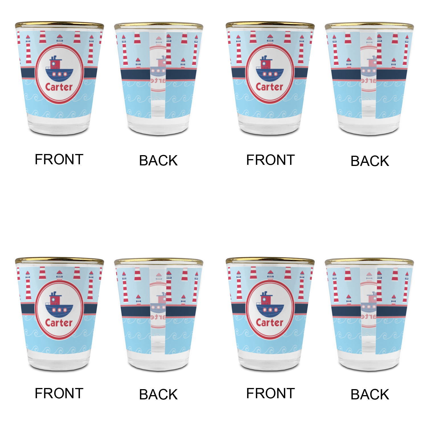Tug Boat Designs for Glass Shot Glasses - 1.5 oz - with Gold Rim - Set of 4