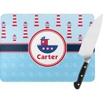 The center focal point of the design is a whimsical coordinating colored tugboat showcased in what looks like a ship's porthole with your personalized name under the tugboat.