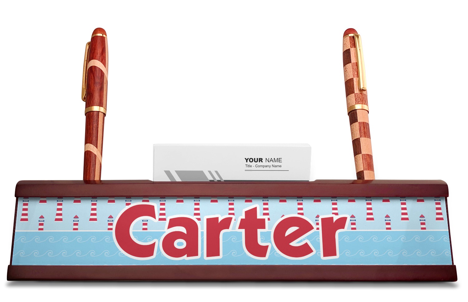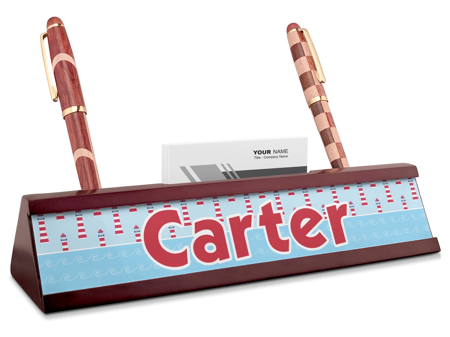 Coastal / Beach Style Designs for Red Mahogany Nameplates with Business Card Holder