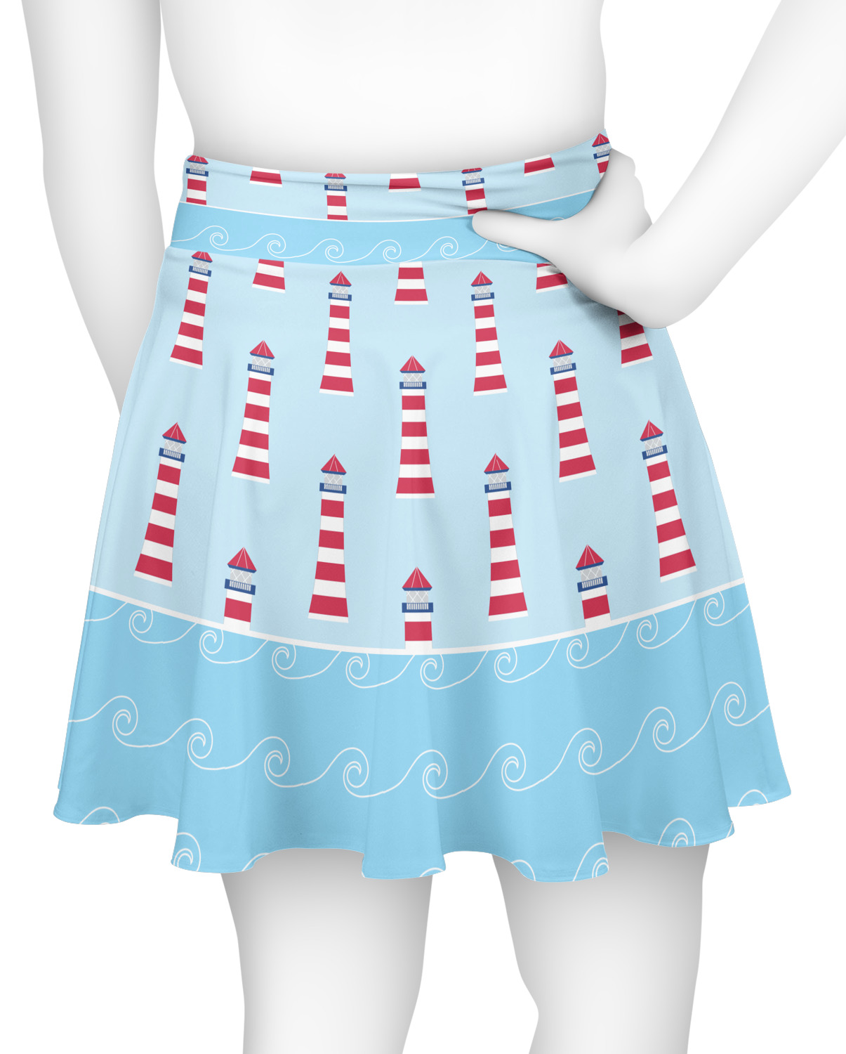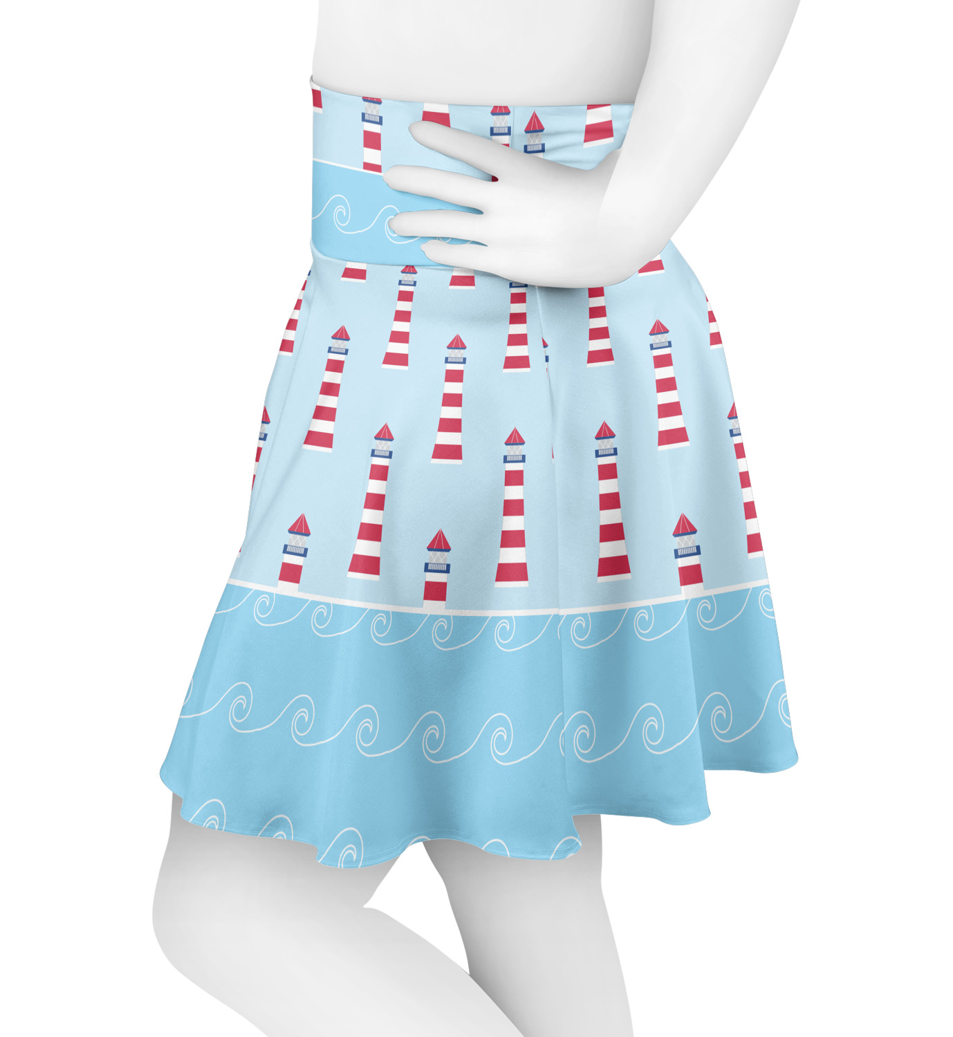 This skirt is a fun skater style that flares out (especially if you take a twirl in it!). The waist band is about 4" thick to wear as a high wasted skirt, but can easily be folded down to become a low waisted skirt. The band hugs you tight while the rest of the skirt is very flowy. The material is a comfortable, casual material that has a very slight sheen to it. It comes in 6 different sizes ranging from XS to 2XL. This skirt is perfect as a casual skirt, but can be easily dressed up to be a more formal skirt.