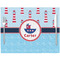 This fun nautical design features a versatile light blue background with a lighthouse pattern on the top with coordinating light blue ocean waves on the bottom. A red stripe with a nautical darker blue rope through the middle brings both patterns together to create a beautiful nautical seascape design.