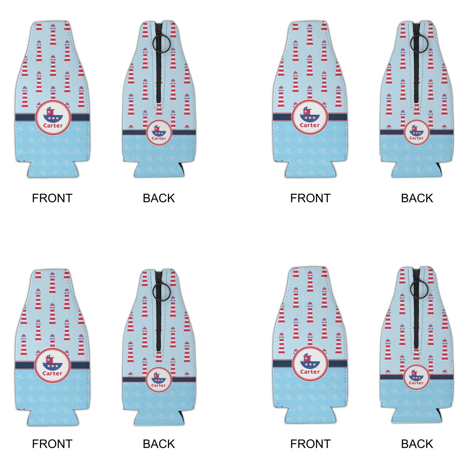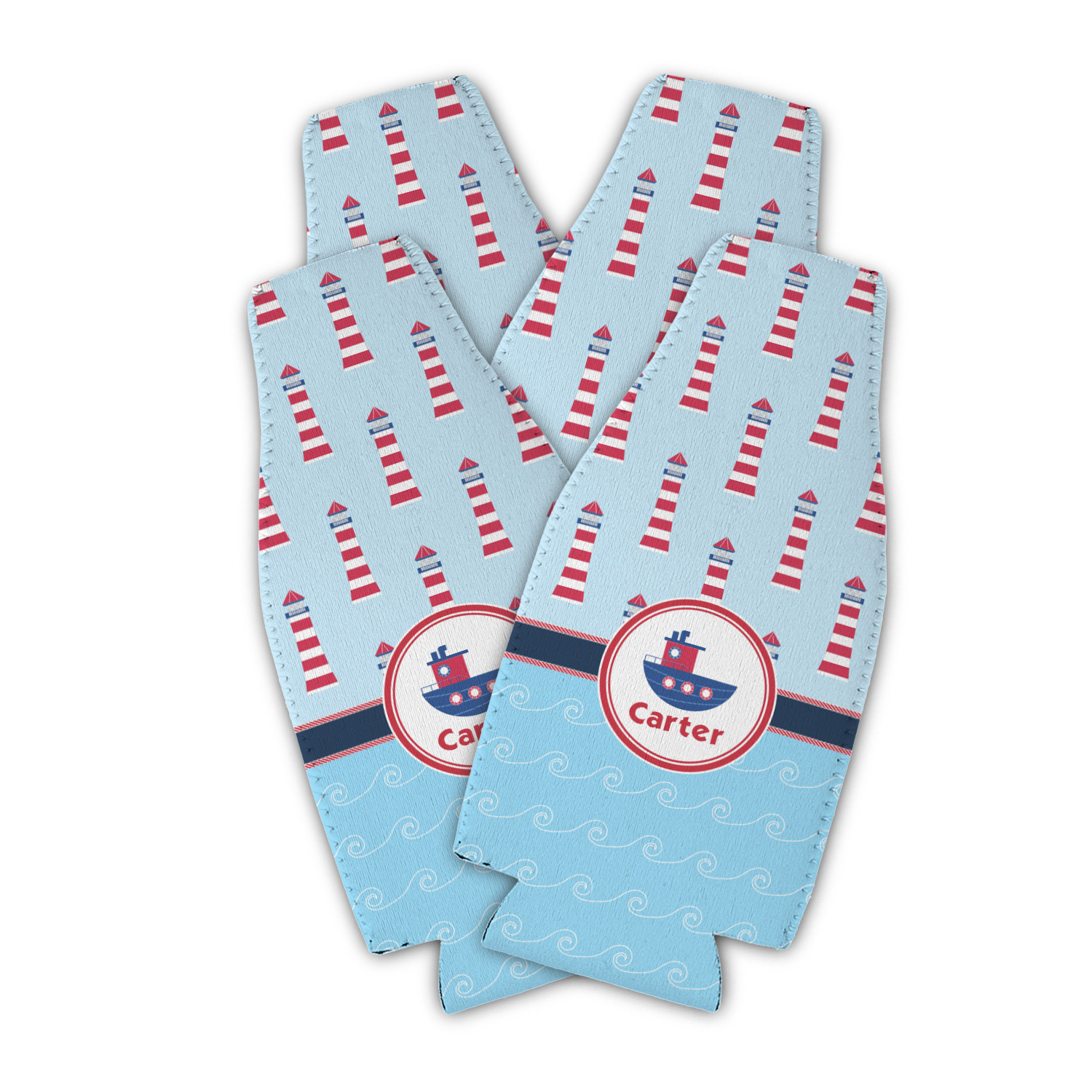 Tug Boat Designs for Zipper Bottle Coolers - Set of 4