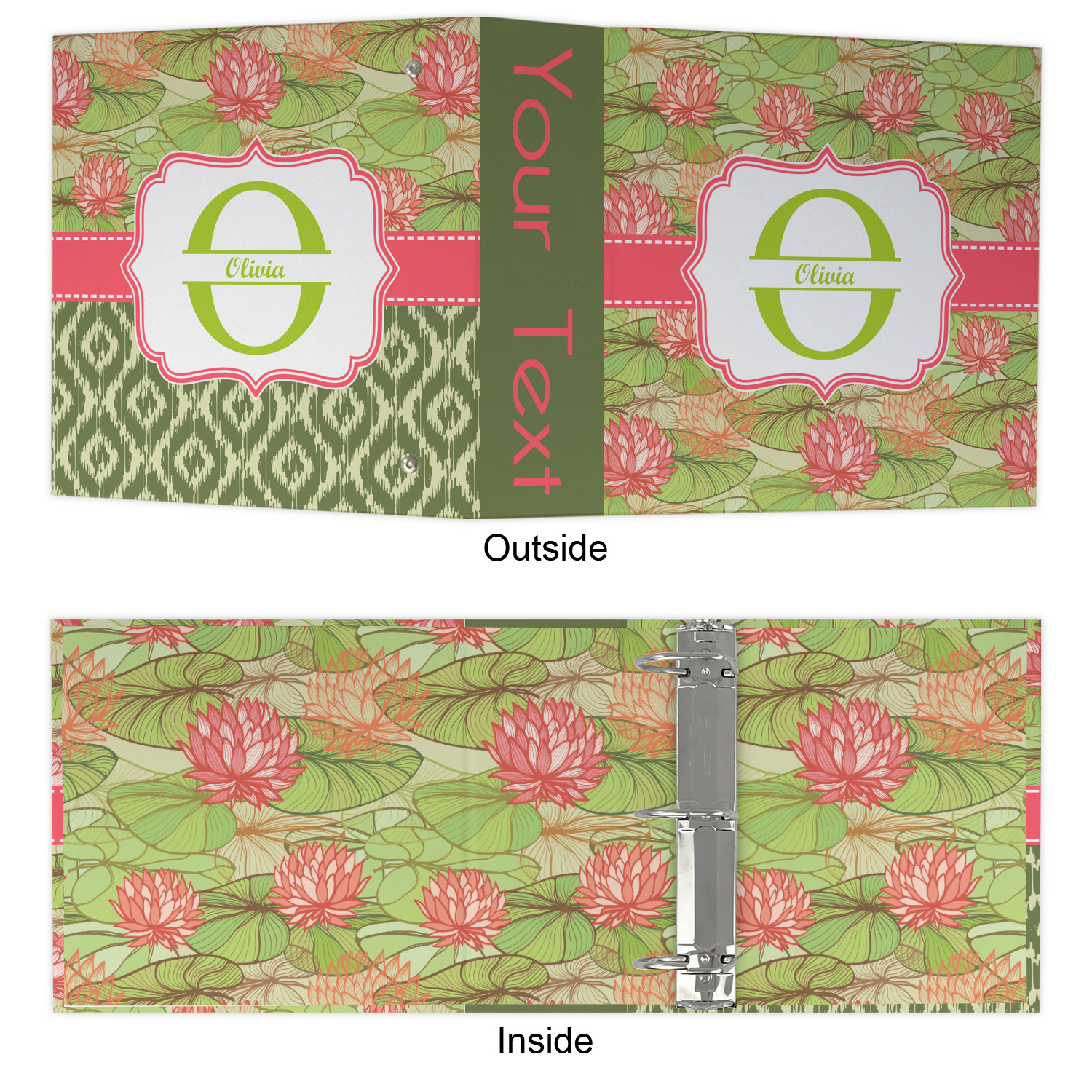 Made from a sturdy cardboard base with a full high quality canvas textured vinyl wrap with the design of your choice. Unlike our standard 3-ring binder with the full wrap design your artwork wraps from the front and back and into the inside of the binder.