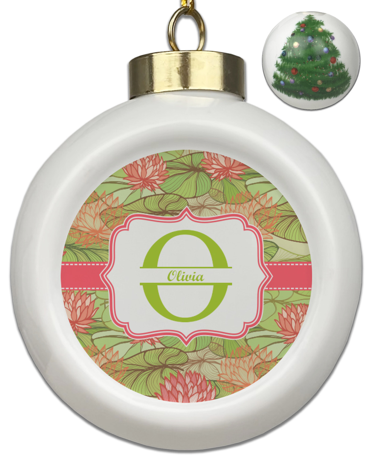 Our Christmas ornaments are a unique ceramic ball shape with a twist as it has a flat face to display your custom design! Select from one of our two design types - Christmas Tree or Poinsettia Garland - to adorn the curved back of your personal design. Each ornament measures 3H x 2.5W x 2D accompanied with a gold string accent for finishing touches to hang on your beautiful Christmas tree!