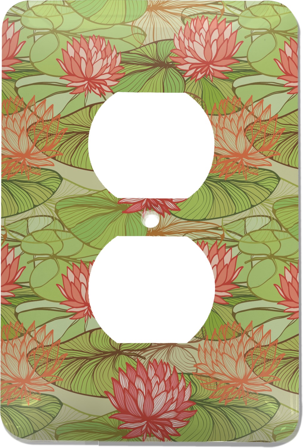 These outlet covers are made from a sturdy metal and display your design across its face. A satin finish coats the design to give it a finished look. The center of this outlet plate cover has a small hole to accommodate a screw upon installation. With your purchase of this decorative outlet cover, we include one screw. This outlet plate is of a standard size, and measures at approximately 3.5 by 5 inches.