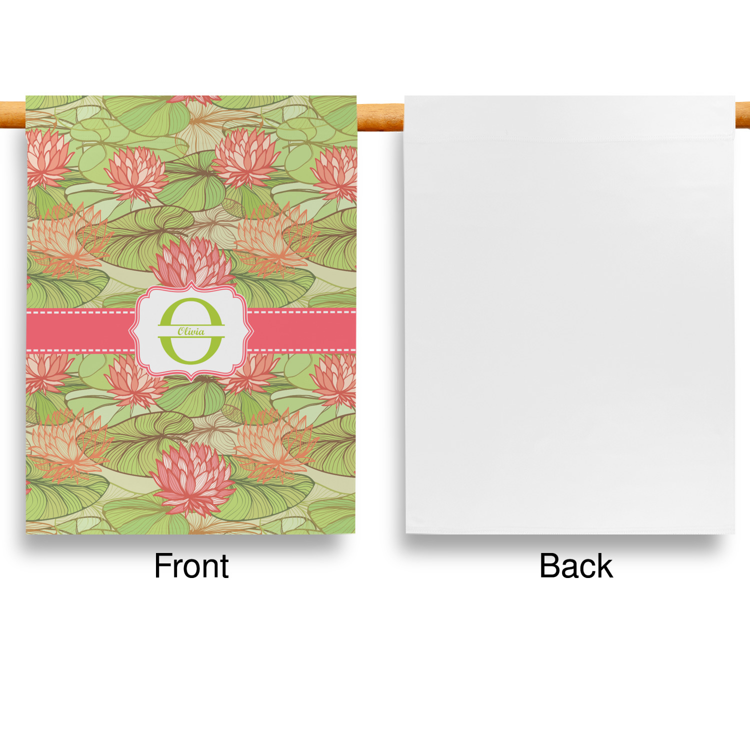These custom garden flags are made of a durable, double-ply, polyester weave, allowing them to withstand the elements year round. The small flags measure at approximately 12 by 18 inches. The large flags measure out to 28 by 37 inches. You can order these decorative flags with your customization printed on the front only, or the front and back.