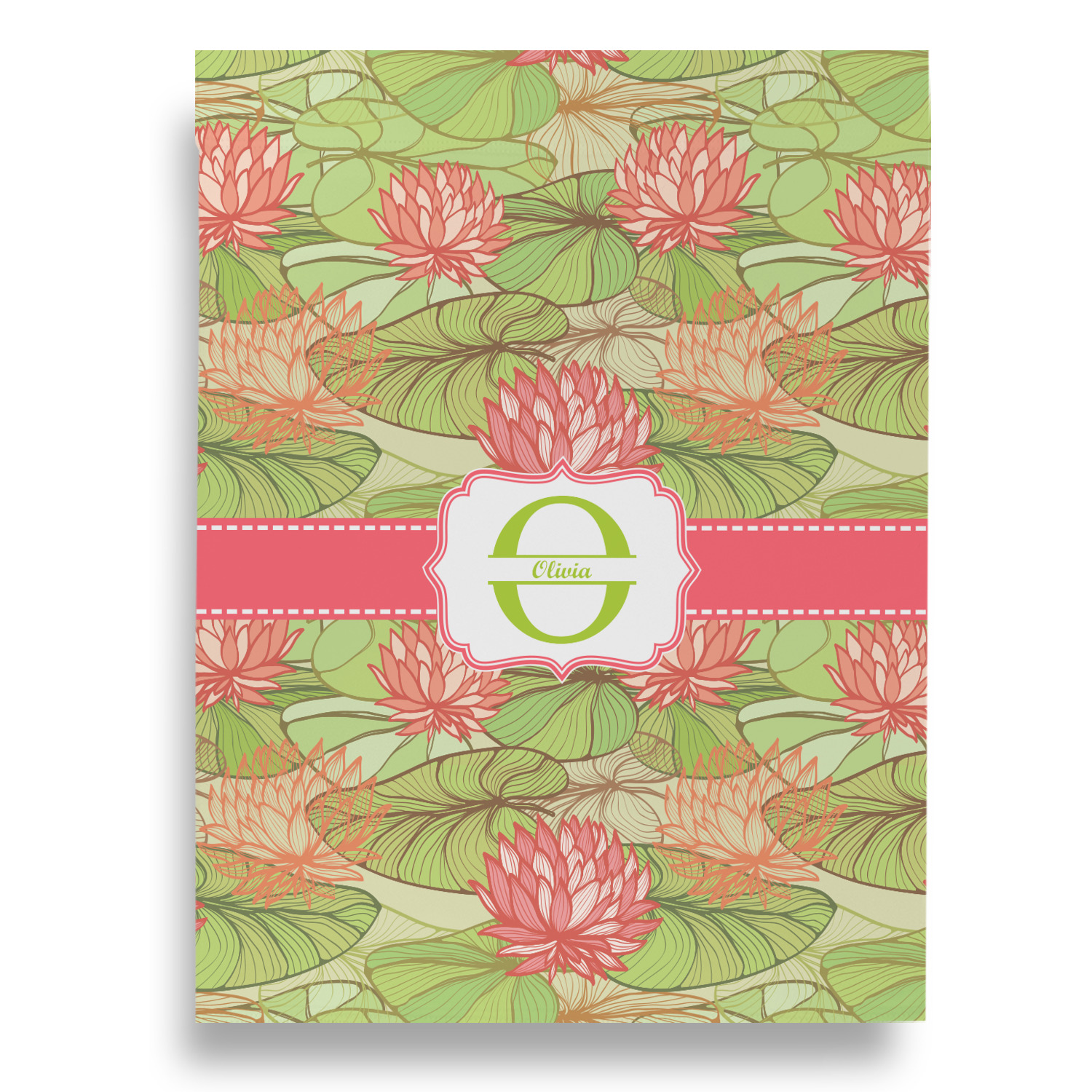 If you like Van Gogh's famous "Waterlily," you'll love our Lily Pads design. A bold pattern of lime green lily pads and popping orange flowers, it channels both nature and modernity. The design has a classic orange ribbon trimmed in white. The decorative label is the perfect place to add an initial and a name for that personal touch to pull the entire design together.