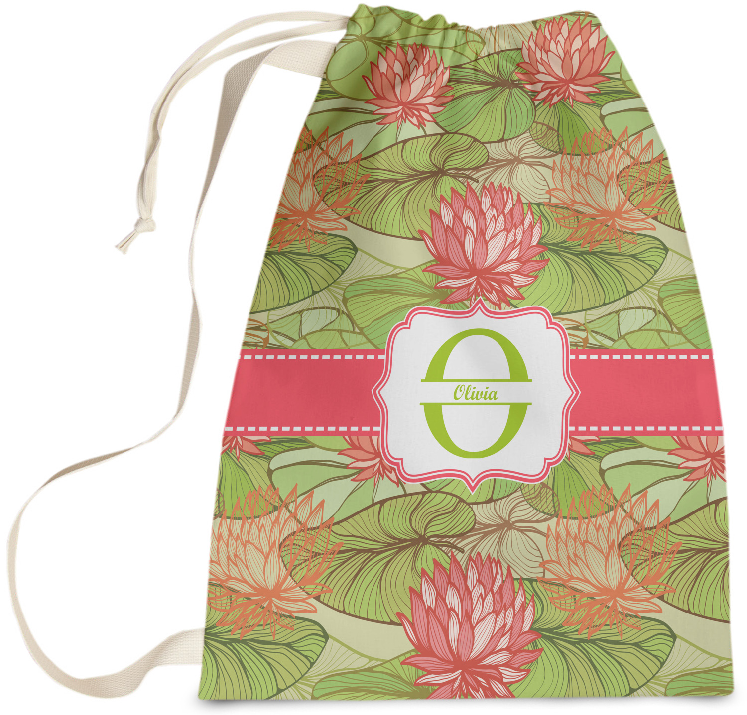 Carry your laundry in style with these customized laundry bags. Available in two sizes, featuring a natural colored woven strap and a cinch cord, these bags hold a lot of clothes or anything else you want to fit in them.
