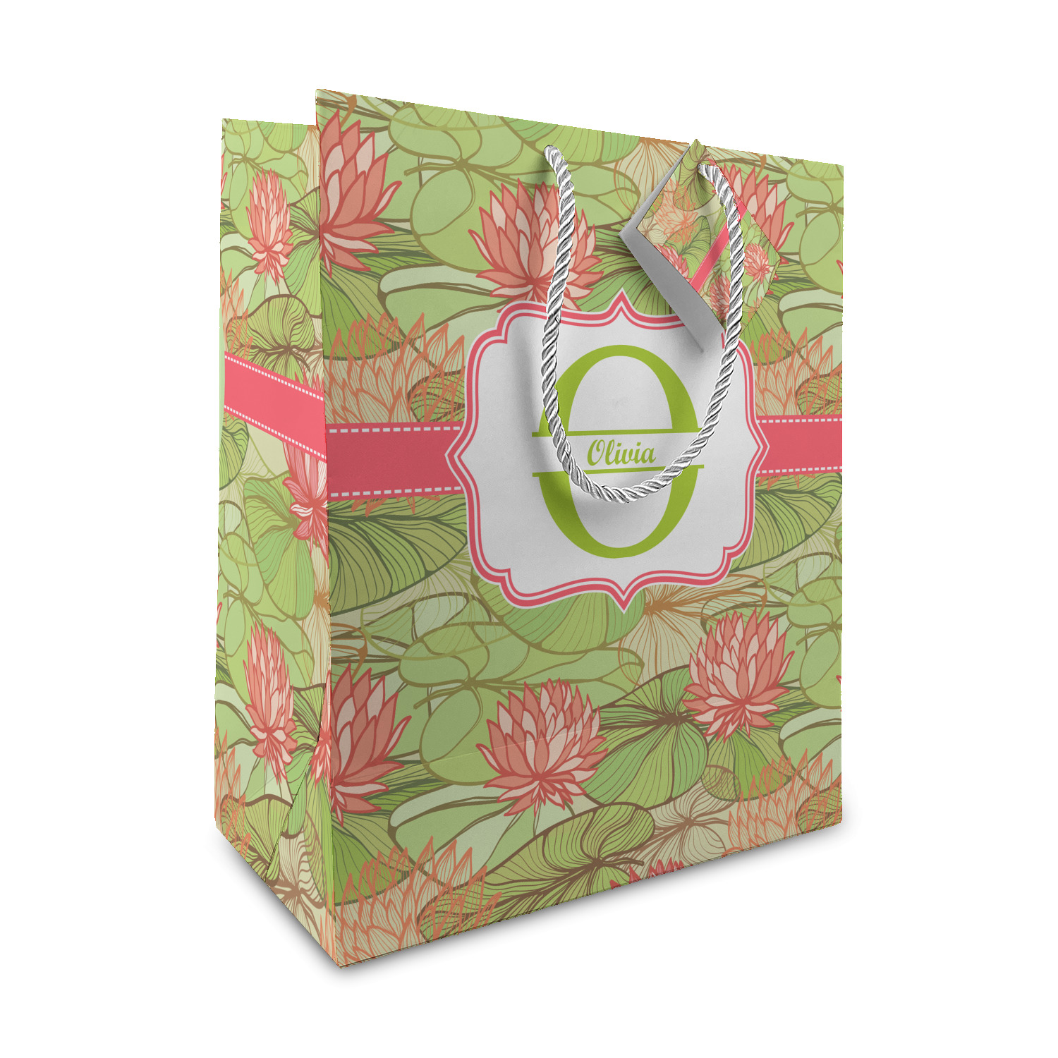 If you like Van Gogh's famous "Waterlily," you'll love our Lily Pads design. A bold pattern of lime green lily pads and popping orange flowers, it channels both nature and modernity. The design has a classic orange ribbon trimmed in white. The decorative label is the perfect place to add an initial and a name for that personal touch to pull the entire design together.