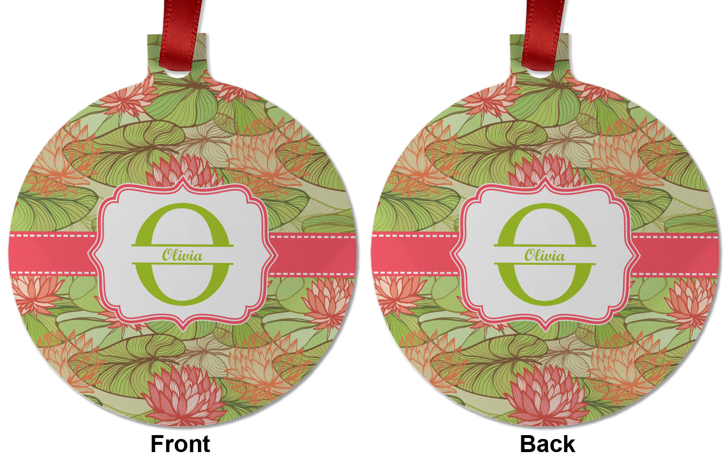 If you like Van Gogh's famous "Waterlily," you'll love our Lily Pads design. A bold pattern of lime green lily pads and popping orange flowers, it channels both nature and modernity. The design has a classic orange ribbon trimmed in white. The decorative label is the perfect place to add an initial and a name for that personal touch to pull the entire design together.