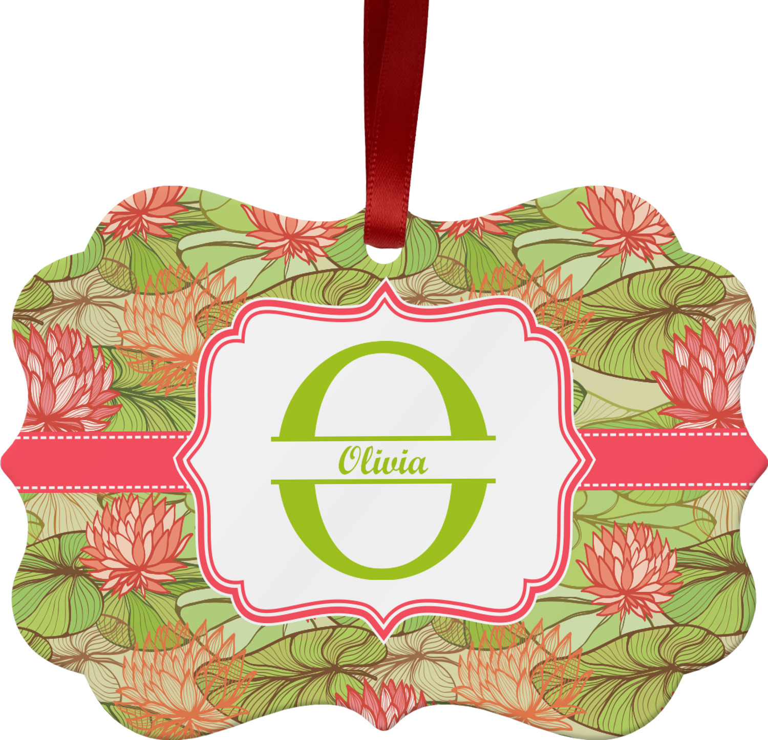 If you like Van Gogh's famous "Waterlily," you'll love our Lily Pads design. A bold pattern of lime green lily pads and popping orange flowers, it channels both nature and modernity. The design has a classic orange ribbon trimmed in white. The decorative label is the perfect place to add an initial and a name for that personal touch to pull the entire design together.