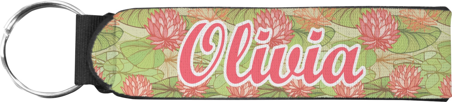 Made from neoprene, these key fob wristlets are comfortable, cushioned, easy to slip on and off; these traits allow it to maintain a slim, yet fashionable appearance, all while optimizing your efficiency. When attaching or removing keys, simply squeeze open the included metal ring. These fobs measure at around 4 inches, and have a bit of a stretch. Thus, they are best suited for small to medium size wrists. If you require a larger size, check out our webbing keychain fob for larger sizing.