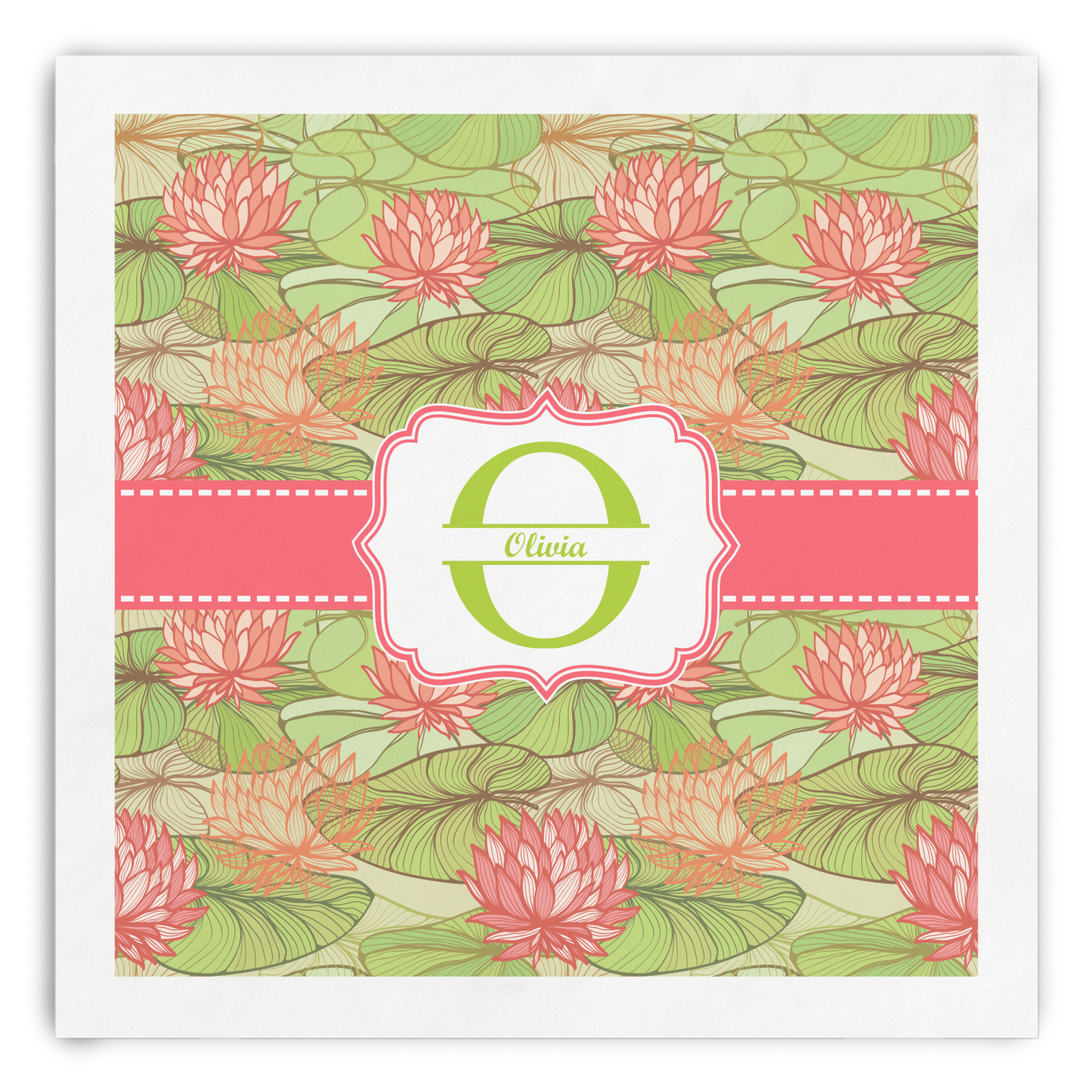 If you like Van Gogh's famous "Waterlily," you'll love our Lily Pads design. A bold pattern of lime green lily pads and popping orange flowers, it channels both nature and modernity. The design has a classic orange ribbon trimmed in white. The decorative label is the perfect place to add an initial and a name for that personal touch to pull the entire design together.