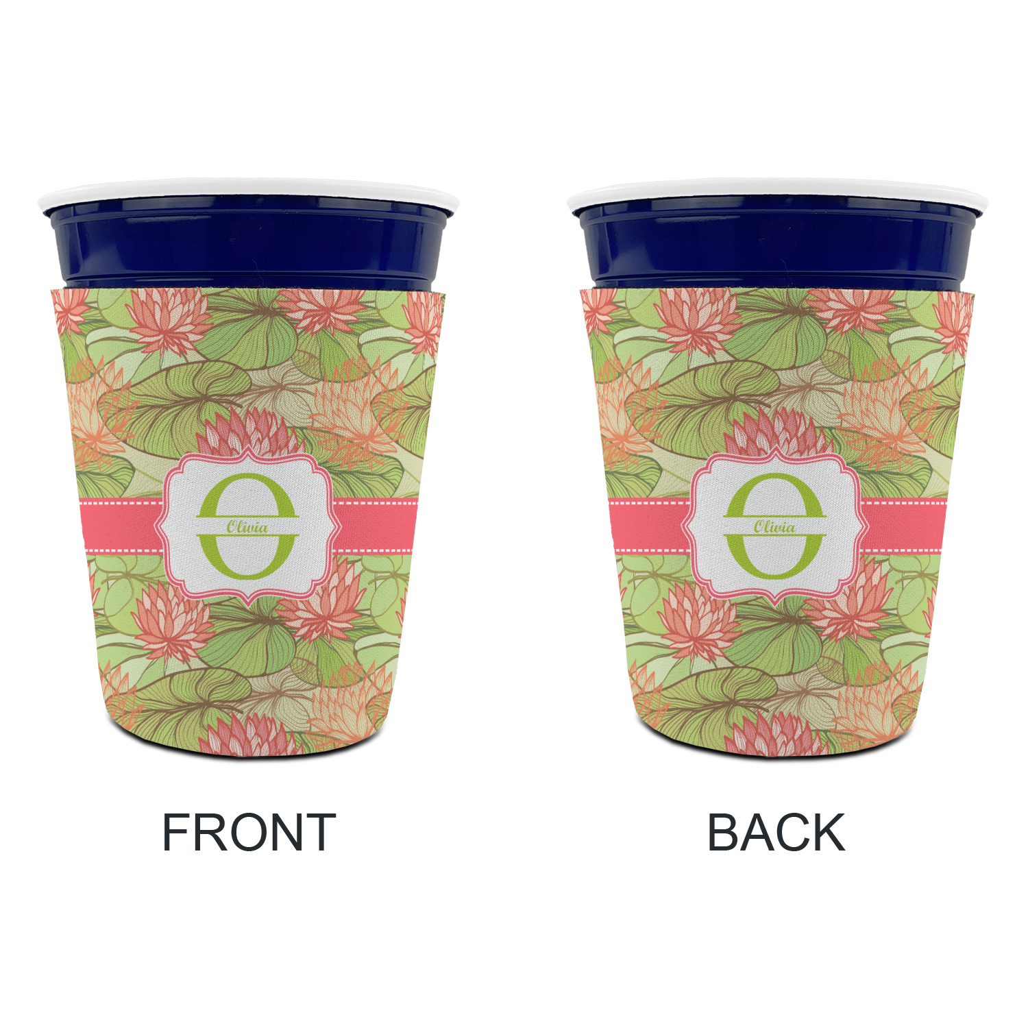 Made from neoprene with a polyester outer fabric and sewn seams, these premium quality party cup sleeves are very durable and will hold up to heavy use. They are available in 2 styles - with a bottom or just a sleeve to go around the outside of the tapered cup. The sleeve covers are about 4" tall and cover about 90% of the classic 16 oz. Solo cup.
