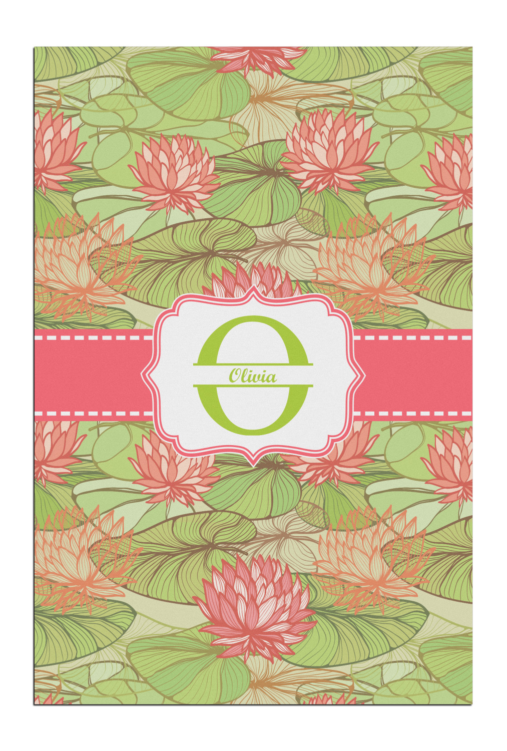 If you like Van Gogh's famous "Waterlily," you'll love our Lily Pads design. A bold pattern of lime green lily pads and popping orange flowers, it channels both nature and modernity. The design has a classic orange ribbon trimmed in white. The decorative label is the perfect place to add an initial and a name for that personal touch to pull the entire design together.