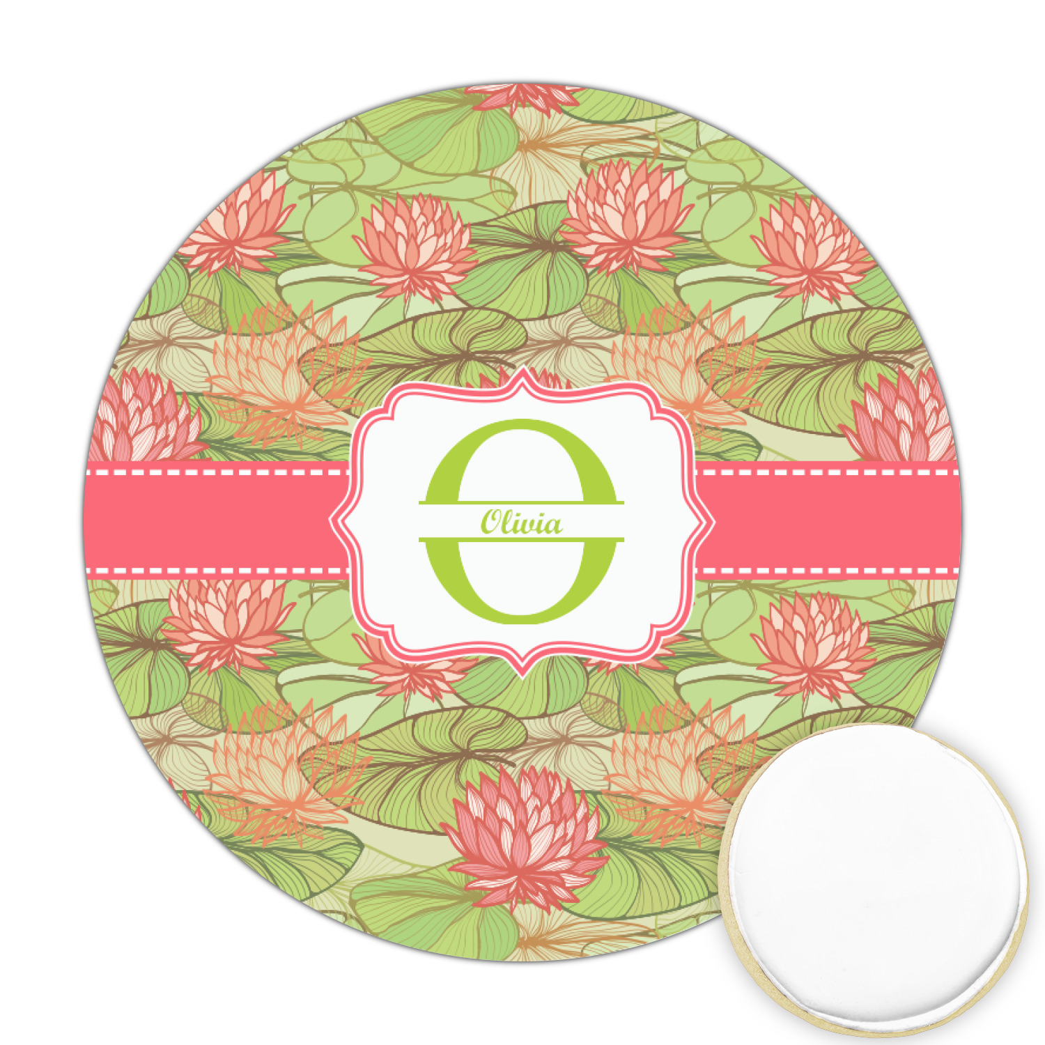 If you like Van Gogh's famous "Waterlily," you'll love our Lily Pads design. A bold pattern of lime green lily pads and popping orange flowers, it channels both nature and modernity. The design has a classic orange ribbon trimmed in white. The decorative label is the perfect place to add an initial and a name for that personal touch to pull the entire design together.