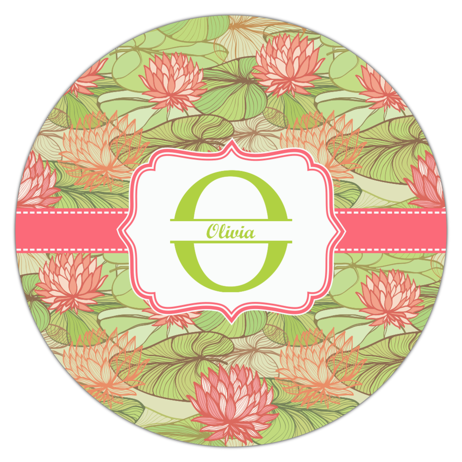 If you like Van Gogh's famous "Waterlily," you'll love our Lily Pads design. A bold pattern of lime green lily pads and popping orange flowers, it channels both nature and modernity. The design has a classic orange ribbon trimmed in white. The decorative label is the perfect place to add an initial and a name for that personal touch to pull the entire design together.