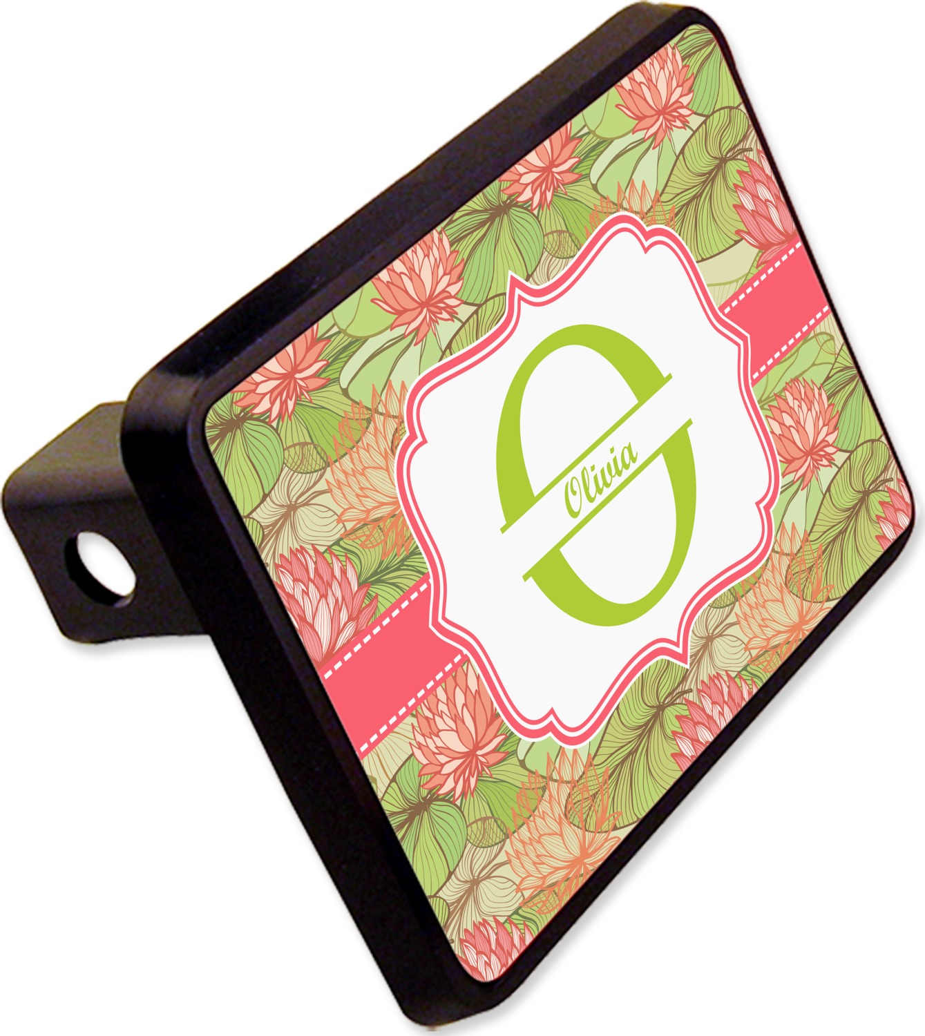 Our receiver hitch covers are molded, durable, and available in a size that fits 2in., square receiver holes. This model is best suited for a Class 3 or Class 4 hitch, but please consult our hitch sizing guide to make an informed purchase. We print your design on the surface of the rectangular cover, while the rest of the cover is a sleek, black color. The design's vibrancy will last up to 2 years in harsh sunlight. Designed for easy attachment, the cover slides easily into your trailer hitch and can be secured using a pin (not included).