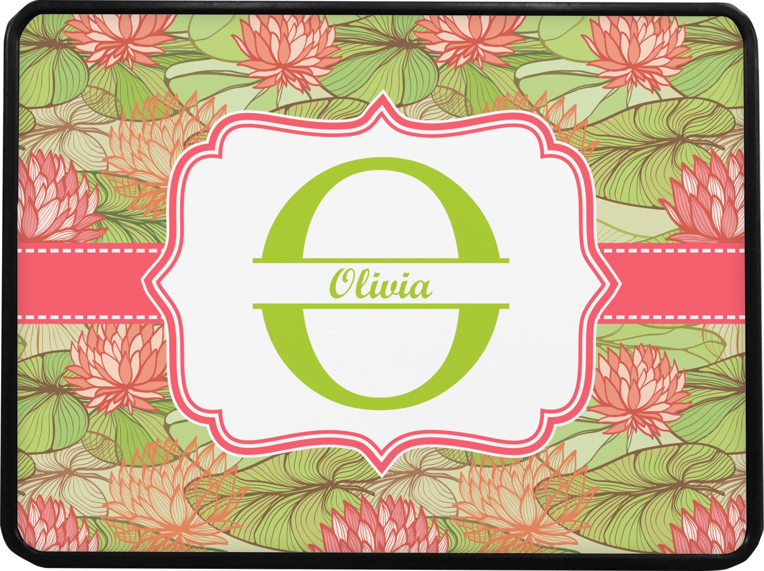 If you like Van Gogh's famous "Waterlily," you'll love our Lily Pads design. A bold pattern of lime green lily pads and popping orange flowers, it channels both nature and modernity. The design has a classic orange ribbon trimmed in white. The decorative label is the perfect place to add an initial and a name for that personal touch to pull the entire design together.