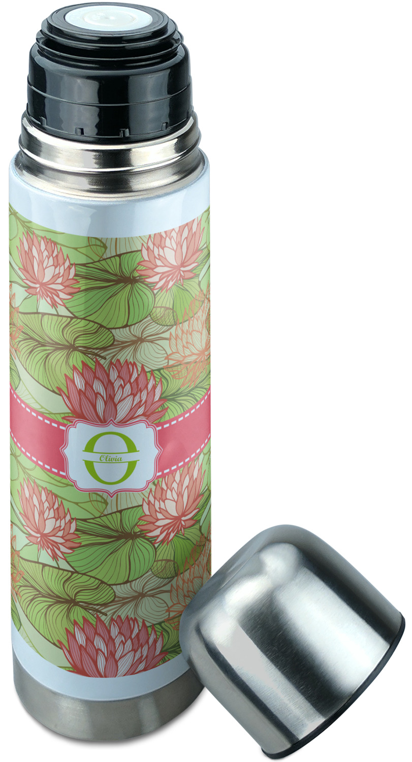 Manufactured from stainless steel, this thermos is built durably and double-walled insulated to preserve the temperature of your drink for hours. It also features a screw off lid that is made to also function as a small cup. Upon unscrewing this part of the thermos bottle, a pop-open, pour feature emerges. This feature allows you to slowly pour your beverage into your lid, ensuring a steady, controlled pour into your lid or other cup. With a capacity of 25 ounces, these large thermoses can hold several servings of your favorite beverage. Your customization is displayed all around the bottle with bright, vibrant color.