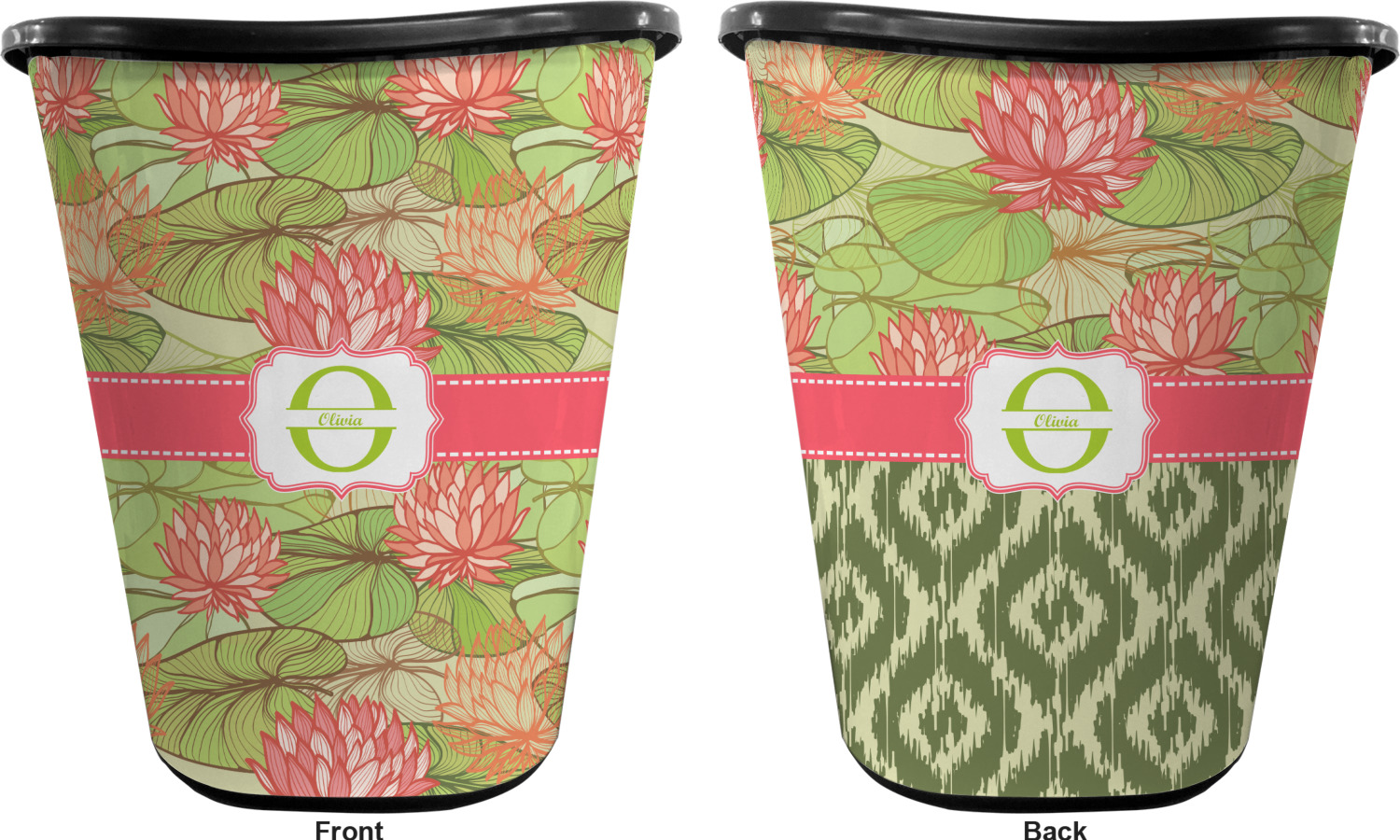 You can choose to purchase these decorative wastebaskets in either a white or a black color that will show on the base and the upper rim. Your customization is printed on a high-gloss, fine-quality vinyl adhesive, and you can choose to either have this adhesive applied to one side only or to both sides. As such, this plastic wastebasket can be single-sided or double-sided, depending on your creative vision. Your customization is printed using durable inks, making the design waterproof and resistant to fading over time.