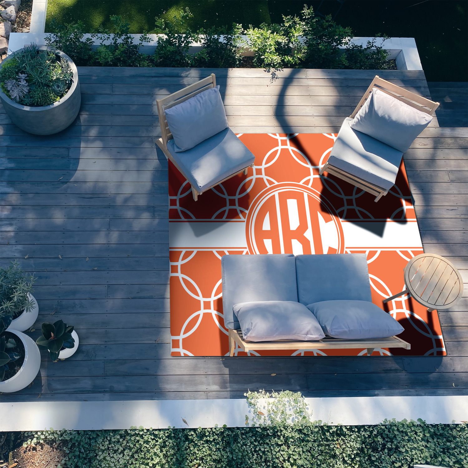 Patio rugs add color and warmth to your home's outdoor space, so create a custom patio rug to suit your personal style and match it to the colors of your outdoor décor. Have it personalized with a monogram, initial, name or a combination of these - the choice is yours.
