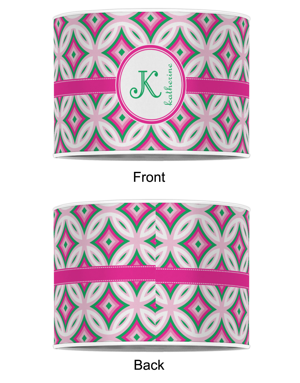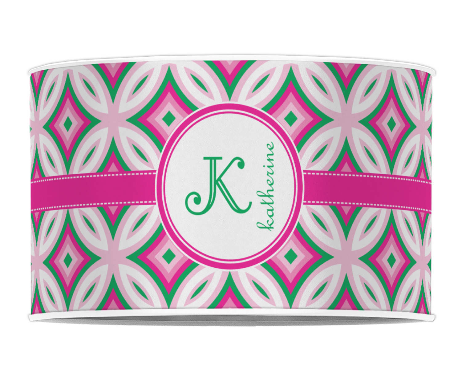 If you are looking for a design that is both girly and graphic, you will love Linked Circles & Diamonds Design. This design's color scheme is composed of light pink, hot pink, green and white. The pattern is exactly what the name implies circles and diamond intertwined through the whole design. Through the center there is label and ribbon shown in hot pink, but the color can be modified.