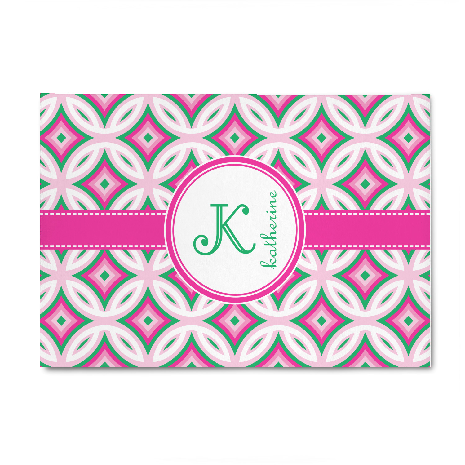 If you are looking for a design that is both girly and graphic, you will love Linked Circles & Diamonds Design. This design's color scheme is composed of light pink, hot pink, green and white. The pattern is exactly what the name implies circles and diamond intertwined through the whole design. Through the center there is label and ribbon shown in hot pink, but the color can be modified.