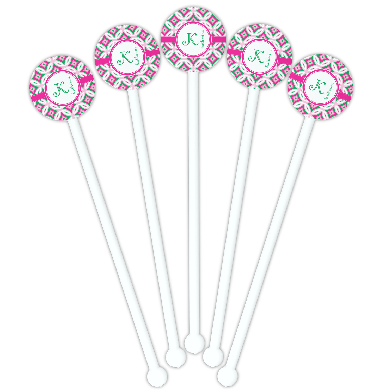 Shape + Symbol Designs for 5.5" Round Plastic Stir Sticks - White - Single-Sided