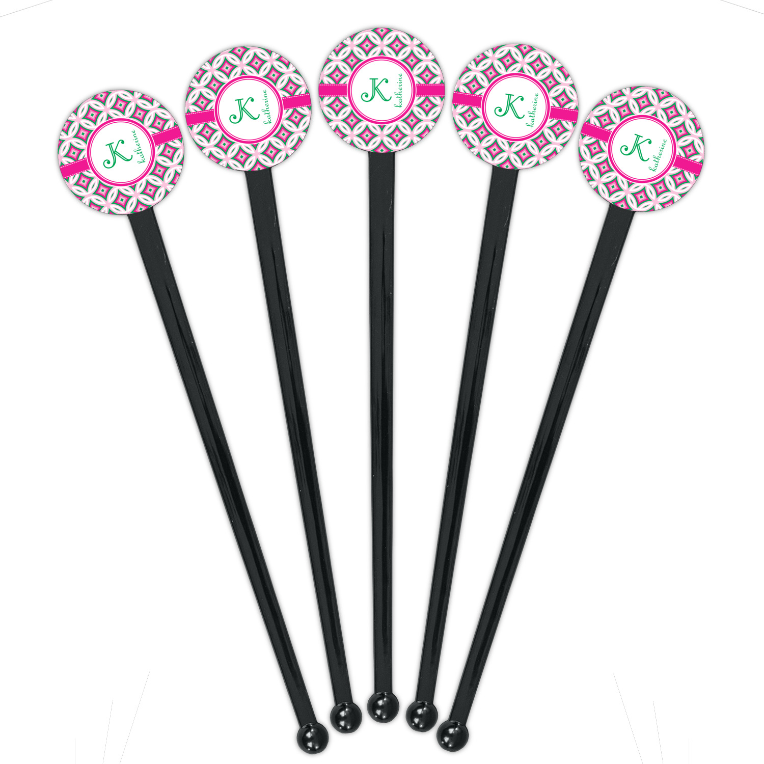Shape + Symbol Designs for 7" Round Plastic Stir Sticks - Black - Double-Sided