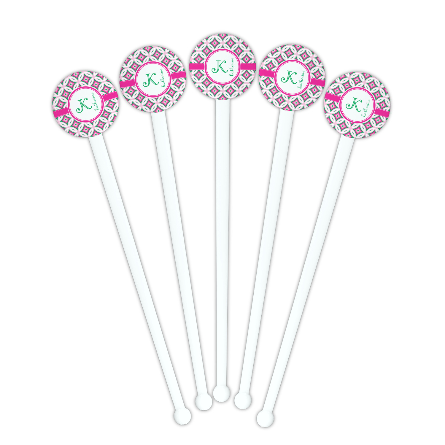 Shape + Symbol Designs for 7" Round Plastic Stir Sticks - White - Single-Sided