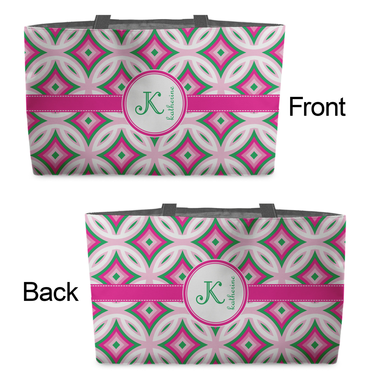 You can design the totes with a design on the front and another one on the back. The two designs can be identical or completely different. The choice is yours.