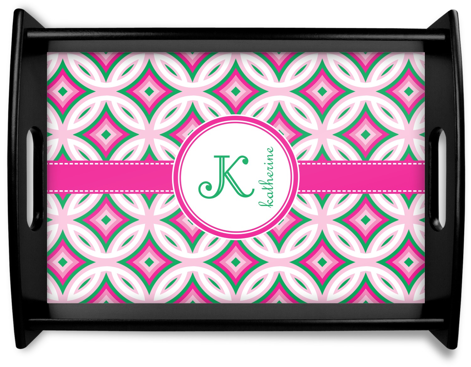 If you are looking for a design that is both girly and graphic, you will love Linked Circles & Diamonds Design. This design's color scheme is composed of light pink, hot pink, green and white. The pattern is exactly what the name implies circles and diamond intertwined through the whole design. Through the center there is label and ribbon shown in hot pink, but the color can be modified.