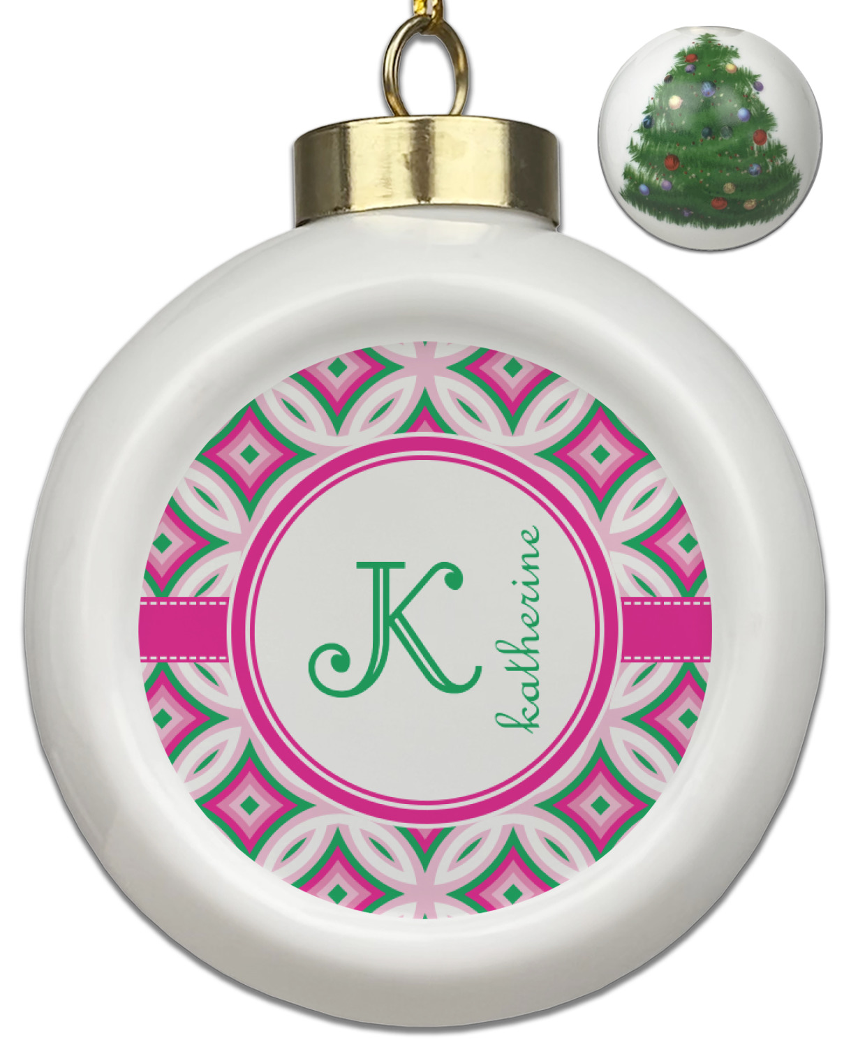 Our Christmas ornaments are a unique ceramic ball shape with a twist as it has a flat face to display your custom design! Select from one of our two design types - Christmas Tree or Poinsettia Garland - to adorn the curved back of your personal design. Each ornament measures 3H x 2.5W x 2D accompanied with a gold string accent for finishing touches to hang on your beautiful Christmas tree!